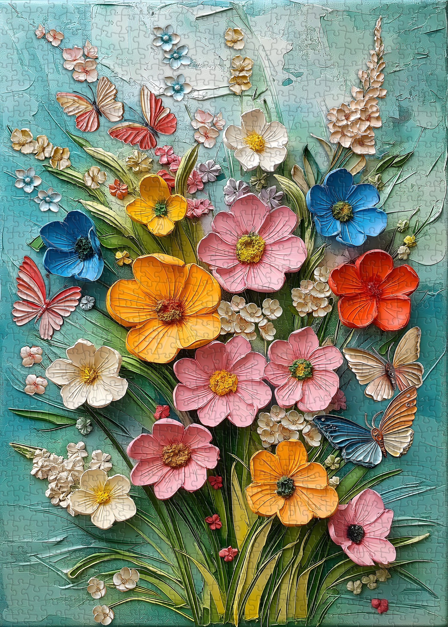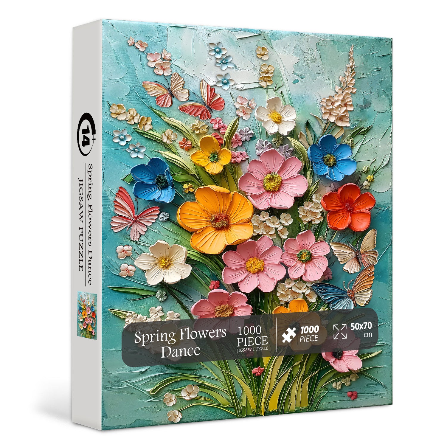 Elegantes 3D-Prägedesign: Das Frühlingsblumentanz -Puzzle zeigt eine atemberaubende 3D-Prägecollage aus zarten Blumen und flatternden Schmetterlingen. Die erhabenen Texturen erwecken das Kunstwerk zum Leben und verleihen jedem zusammengesetzten Teil Tiefe und Dimension.
