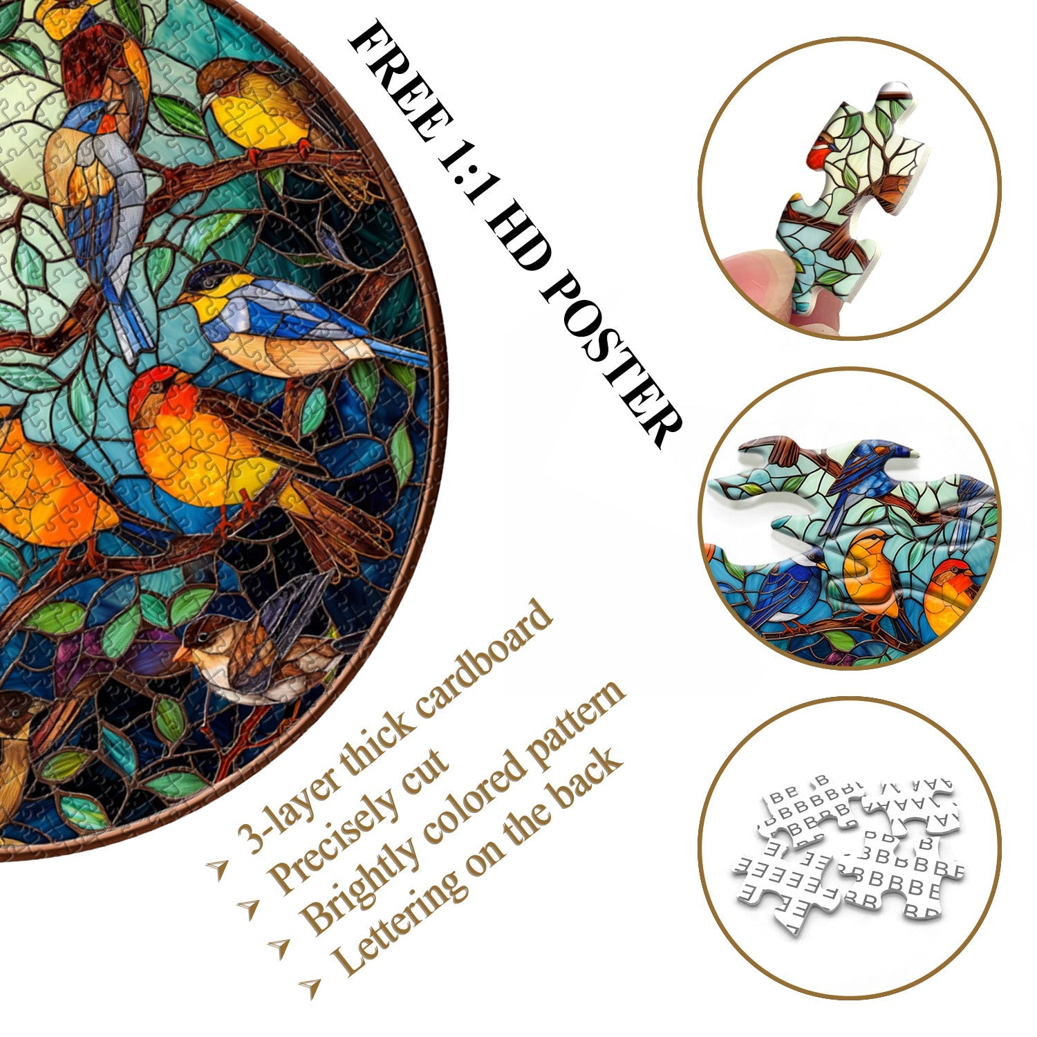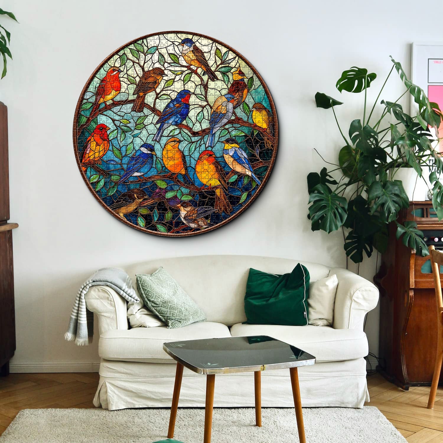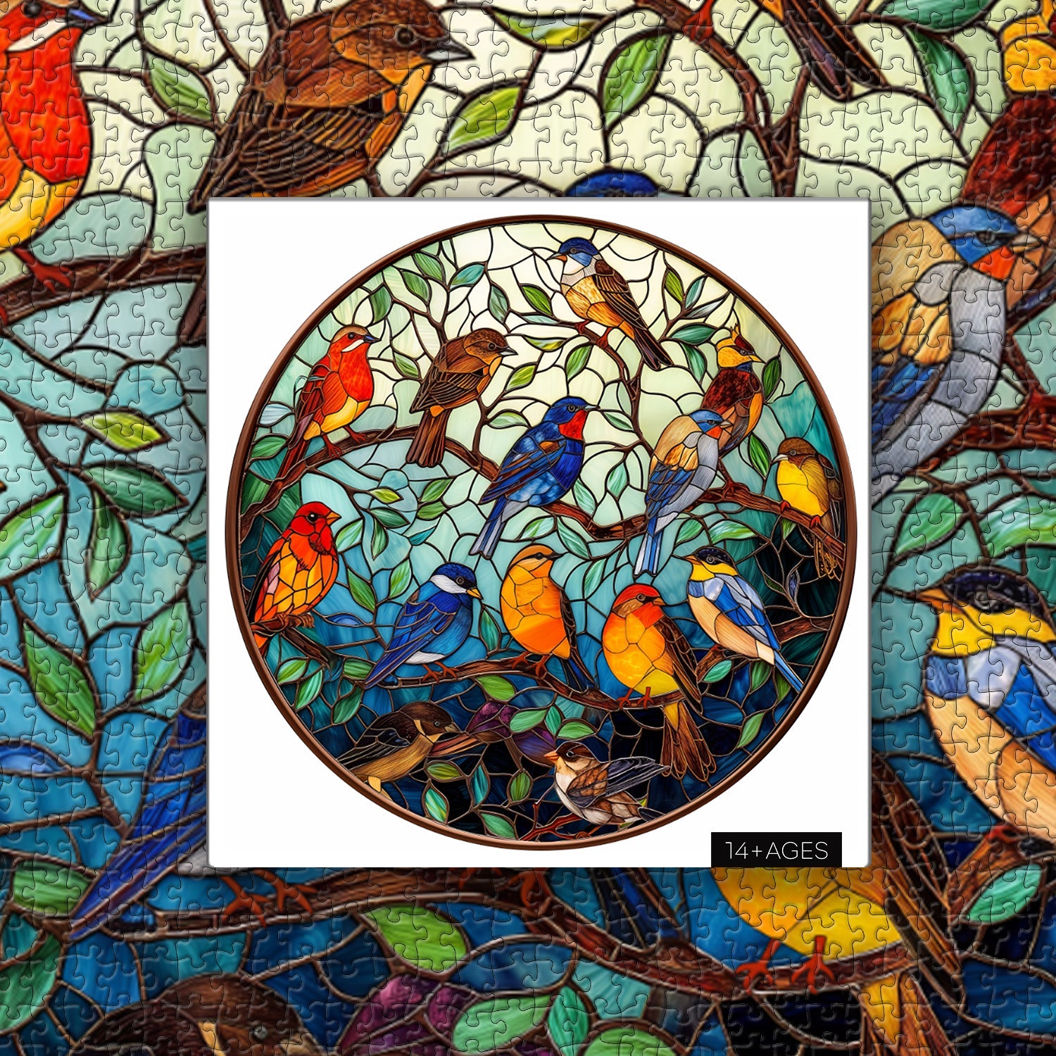 Buntglas-Puzzle mit Vogel- und Baummotiv, 1000 Teile