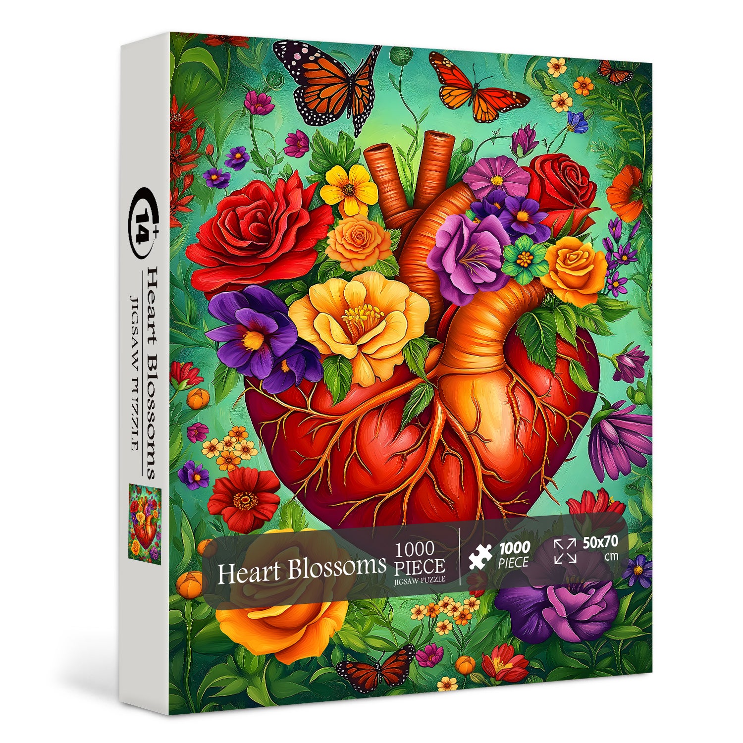 1*Puzzle en forme de cœur avec fleurs - 1000 pièces