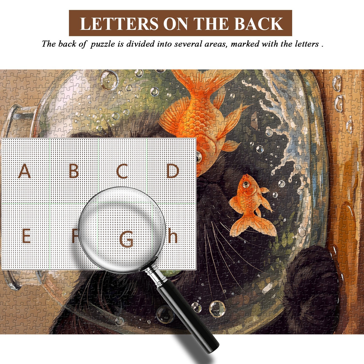 Vivid Artwork & Premium Printing: The puzzle features a stunning, hyper-detailed illustration of a black cat and goldfish, rendered with rich, fade-resistant colors that bring the whimsical scene to life. Every whisker, fish scale, and water bubble is crisply reproduced for an immersive puzzling experience.