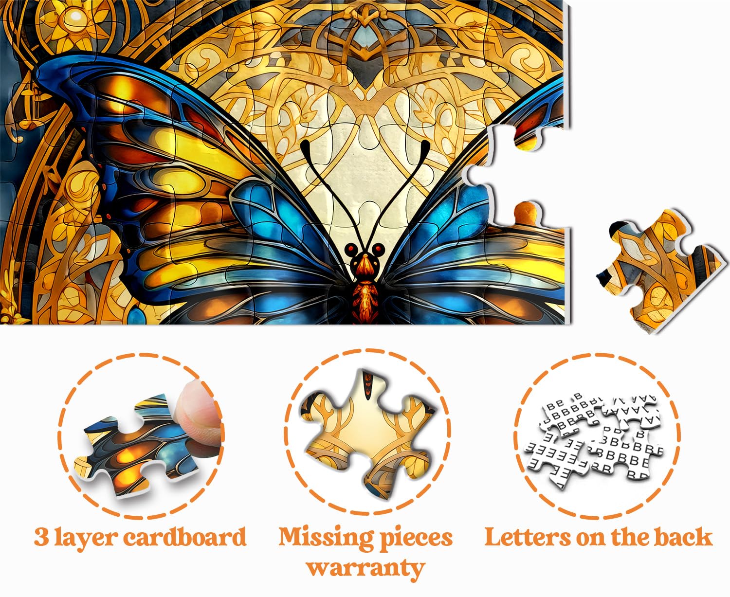 【Eingebettet in die Natur】 Dieses Insektenpuzzle für Erwachsene hat einen leuchtenden Schmetterling aus Buntglas zum Thema. Die goldenen Kanten und Linien auf den Flügeln schimmern im Licht besonders und verleihen dem Puzzle eine geheimnisvolle und elegante Atmosphäre.