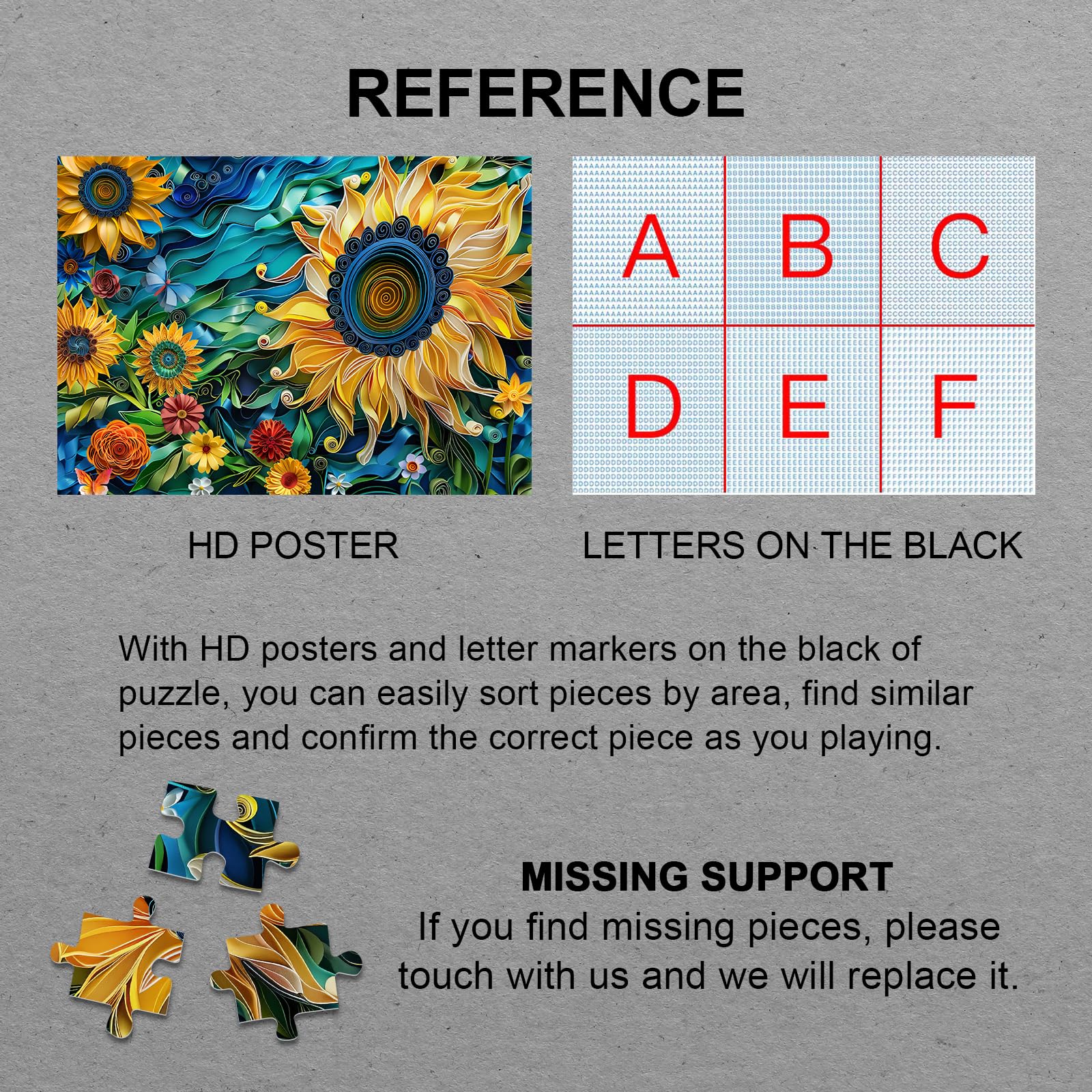 Ein Hauch von Naturschönheit: Tauchen Sie ein in die lebendige und farbenfrohe Welt unseres Sonnenblumenpuzzles. Dieses 1000-teilige Puzzle für Erwachsene fängt die Essenz eines lebendigen Gartens ein und bringt die Freude und Wärme der Natur in Ihr Zuhause.