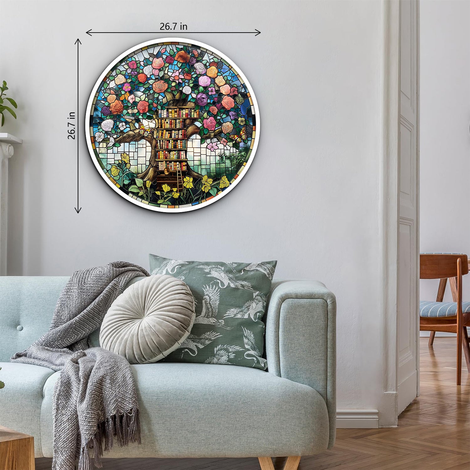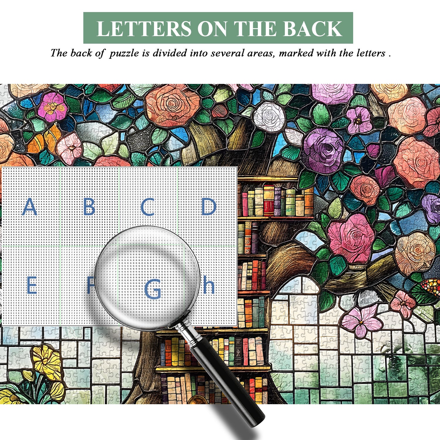 📚 Enchanting Blooming Tree Design Step into a world where books bloom like flowers! This stunning stained-glass-inspired puzzle features a magical tree filled with bookshelves, surrounded by colorful blossoms and nature’s glow.