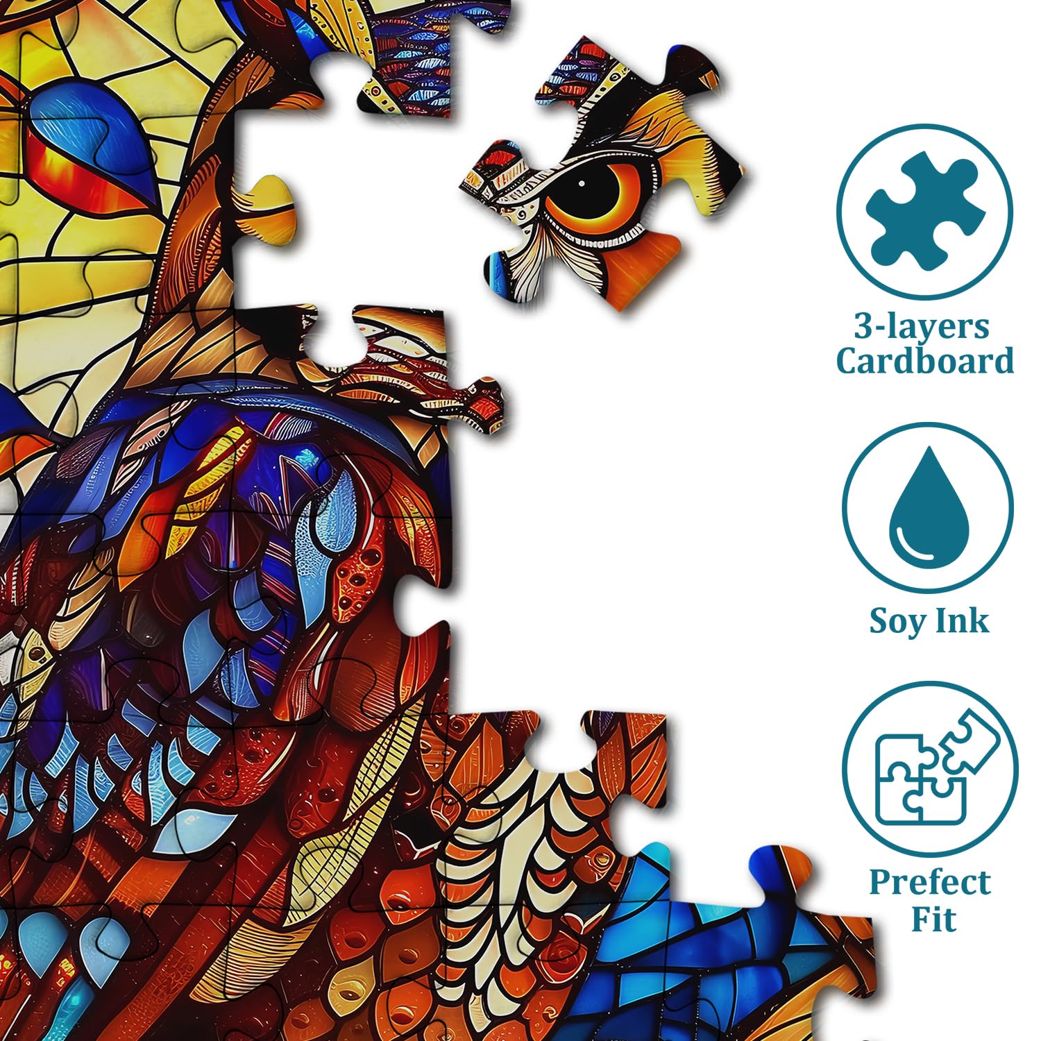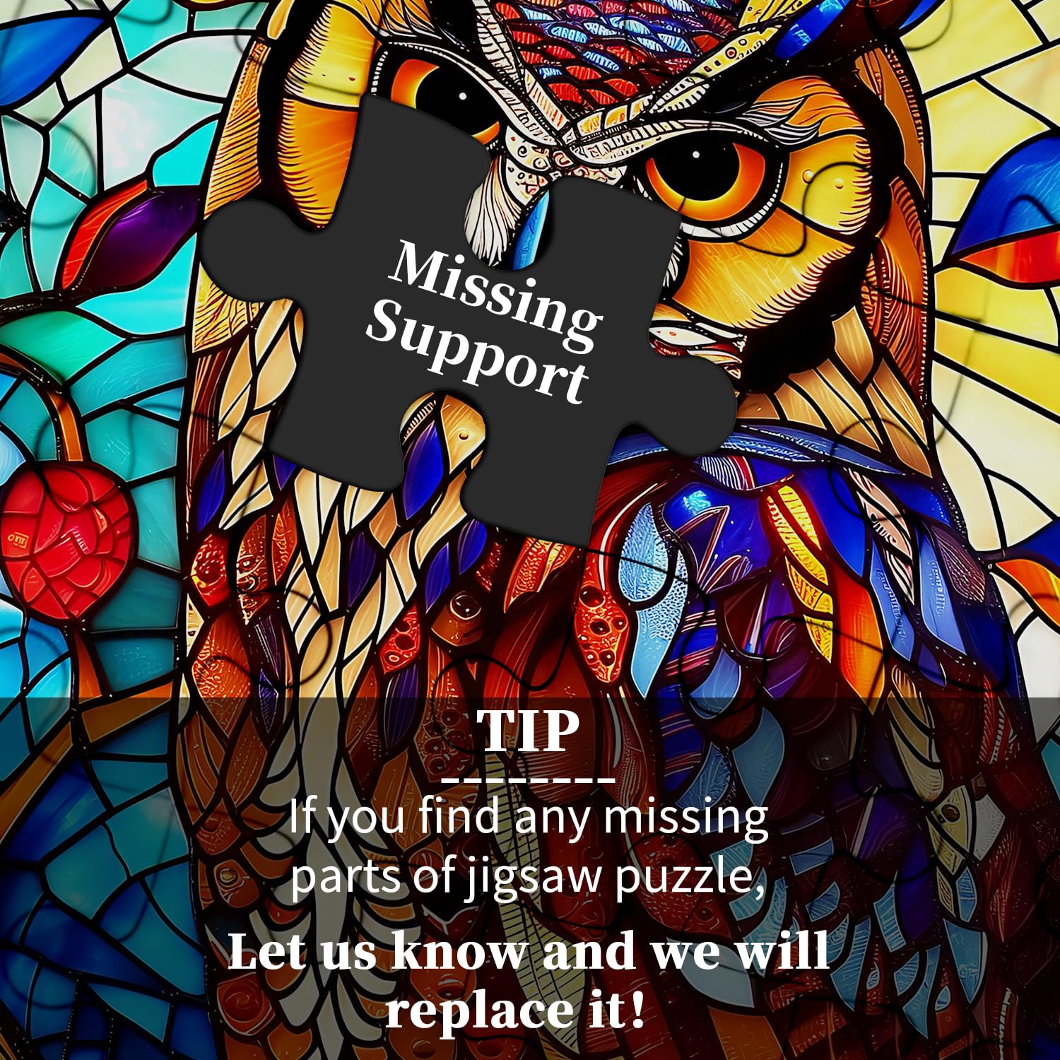 【1000-teiliges Puzzle für Erwachsene, Eule】 Fertige Größe: 68 x 68 cm (26,8 x 26,8 Zoll). Die Verpackungsbox ist robust und exquisit und enthält ein hochauflösendes Poster als Referenz für das Buntglas-Puzzle „Eule“.