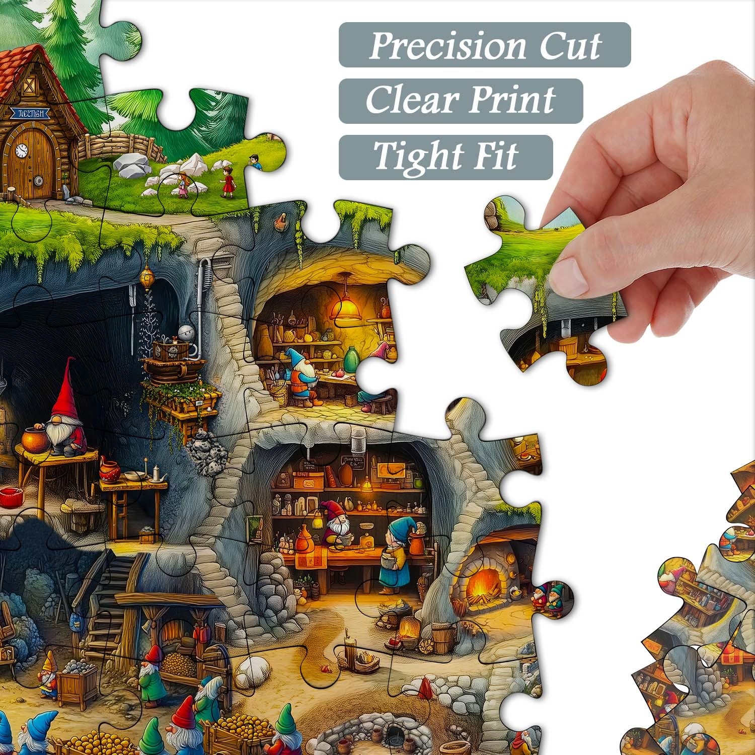 Underground Gnome Village:Explore the enchanting world of the Underground Gnome Village puzzle, featuring a whimsical and detailed design that showcases a hidden village of gnomes in a magical underground setting. Immerse yourself in the intricate scenes and vibrant colors of this captivating puzzle.
