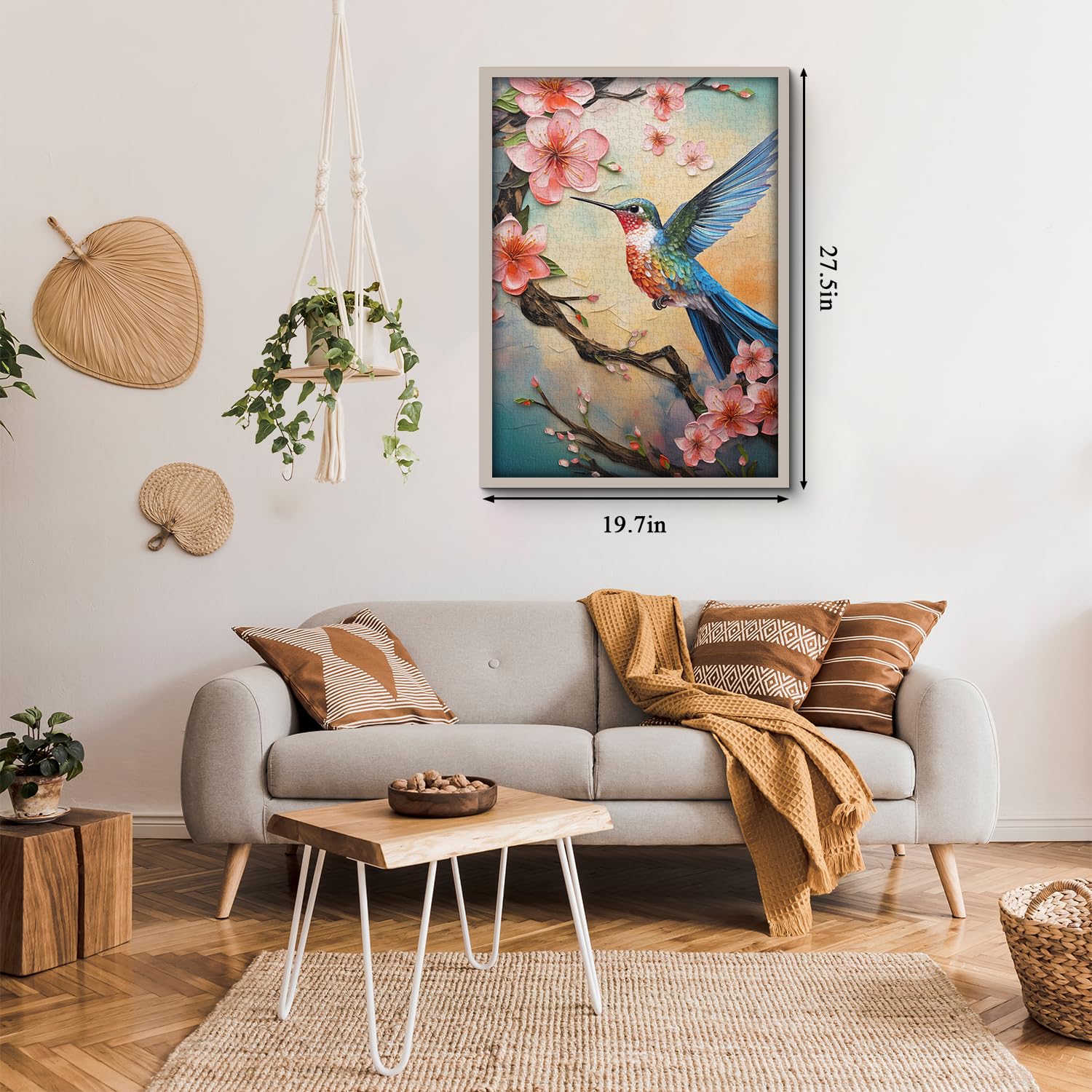 What You'll Receive You will get a Hummingbird Puzzle consisting of 1000 pieces, accompanied by a sturdy packaging box and a high - resolution poster. The size of the completed puzzle is 19.7 * 27.6 inches. The back of each piece is marked with letters, which makes the assembly process easier if you find the puzzle a bit tough.