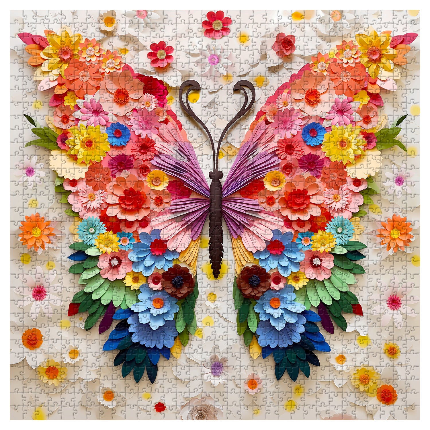 Exquisite Papierkunst: Schwelgen Sie im komplizierten Design eines Schmetterlings aus bunten Blumen, der die Essenz der Papierkunst einfängt.