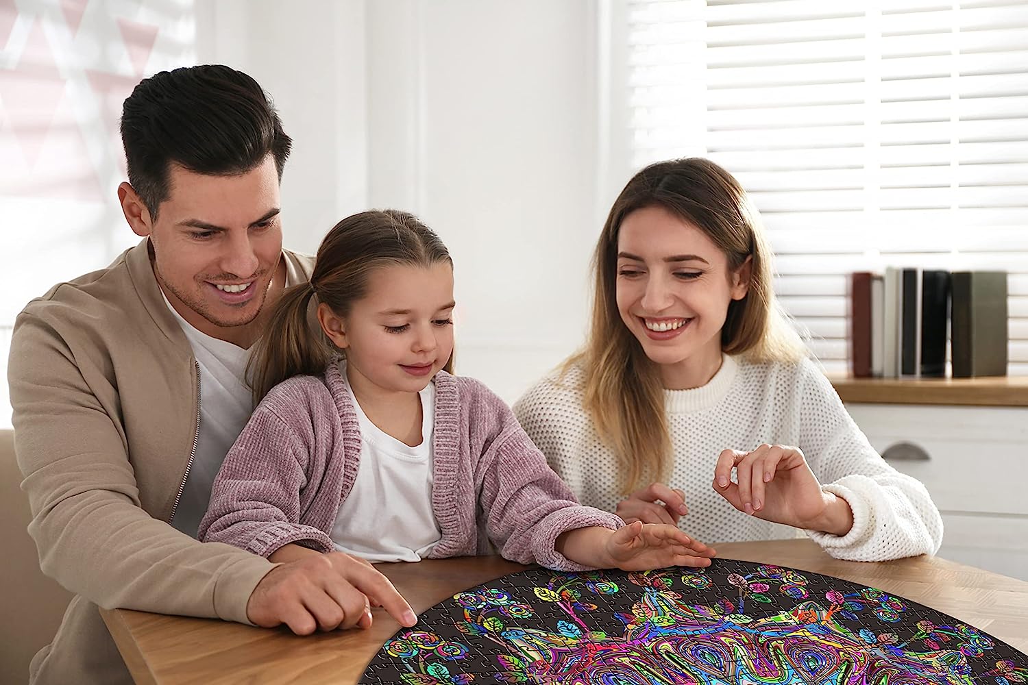 The quality of the print on the pieces is really exceptional. The cut is great and I like the gloss laminate which makes the colours brighter. The alphabet on the back is a great way to make sure the pieces are the right way up. Even down to the zip-lock bag inside to store the pieces after use. The only comment I would make is that occasionally two of us work on these and the image on the box lid is cropped, its not a biggie but would be nice if it were full. I am in the UK and the international shipping arrived really quickly too. Well done, I would definitely purchase again, thank you