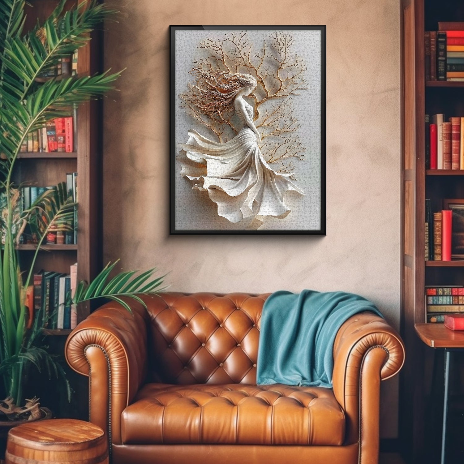 Artistic Style: Features a three - dimensional, sculptural art style that blends human form with natural elements, creating a sense of elegance and depth.