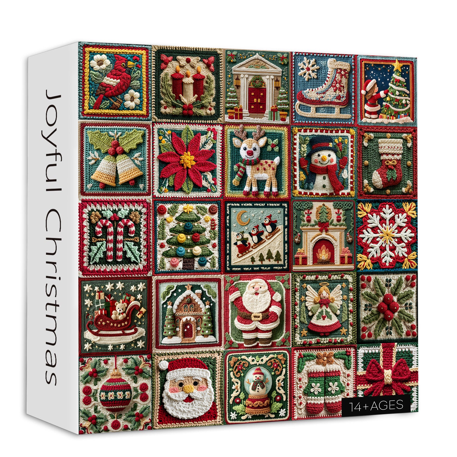 🎄 Design festif style fait main Chaque section de ce puzzle présente un charmant carré au crochet sur le thème de Noël — du Père Noël et des bonhommes de neige aux bas de Noël et traîneaux. Il capture parfaitement la chaleur et la nostalgie des décorations de fête faites à la main.