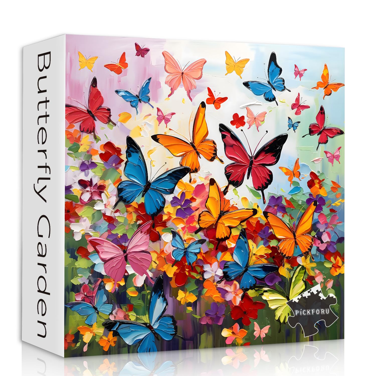 Puzzles de fleurs papillon colorés 1000 pièces : Dans ce style de peinture acrylique, des puzzles de fleurs et de papillons pour adultes, de nombreux papillons colorés volent dans le jardin avec des couleurs vives. La texture unique de la peinture acrylique rend les couleurs particulièrement pleines et éclatantes. Ce puzzle impossible de papillons montre non seulement la beauté de la nature, mais transmet également une atmosphère d'harmonie et de tranquillité.