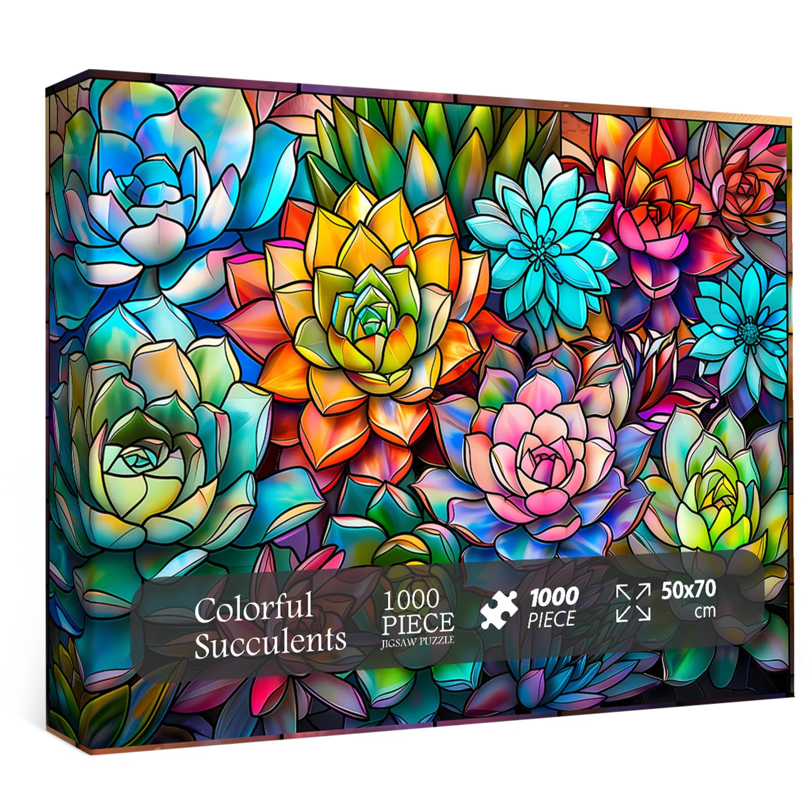1 * Puzzle en verre coloré de succulentes en 1000 pièces