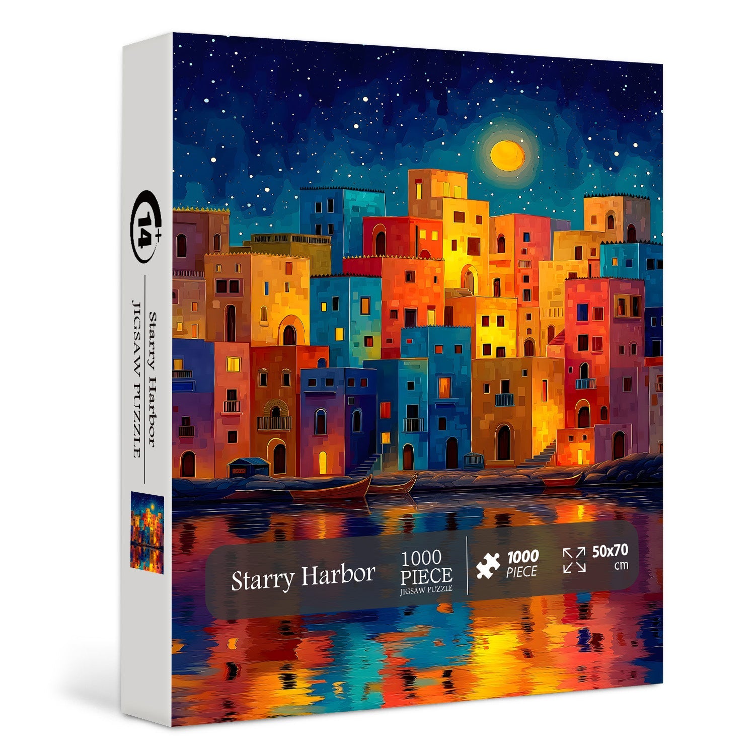 Meditative Nighttime Escape Designed to evoke calm and wonder, this 1000-piece puzzle offers a peaceful, immersive activity that lets you slow down and lose yourself in the serene beauty of a star-lit harbor, perfect for solo relaxation.