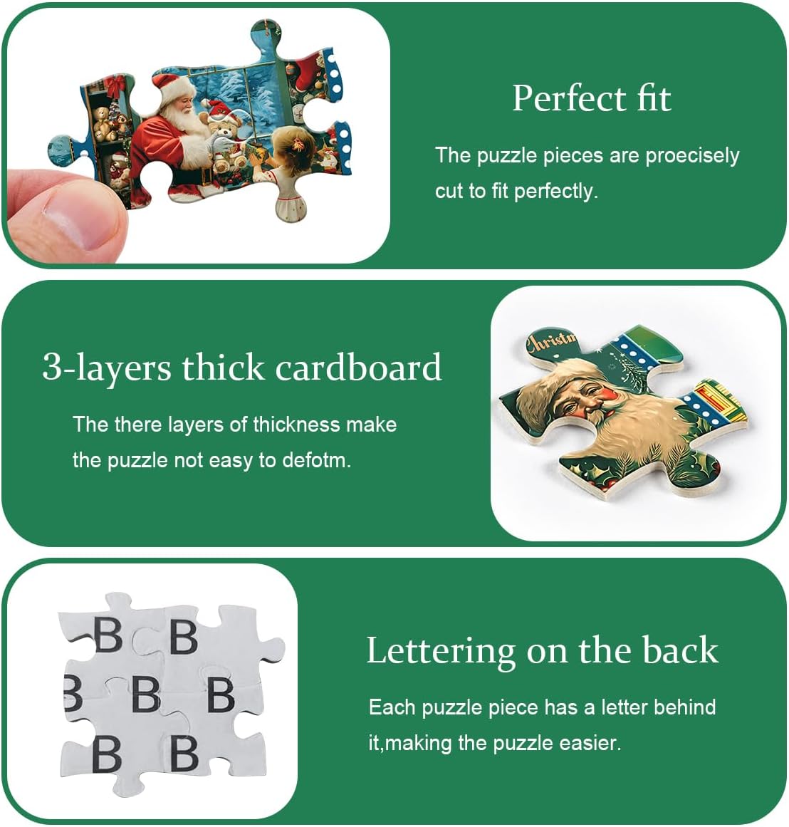 The quality of the print on the pieces is really exceptional. The cut is great and I like the gloss laminate which makes the colours brighter. The alphabet on the back is a great way to make sure the pieces are the right way up. Even down to the zip-lock bag inside to store the pieces after use. The only comment I would make is that occasionally two of us work on these and the image on the box lid is cropped, its not a biggie but would be nice if it were full. I am in the UK and the international shipping arrived really quickly too. Well done, I would definitely purchase again, thank you
