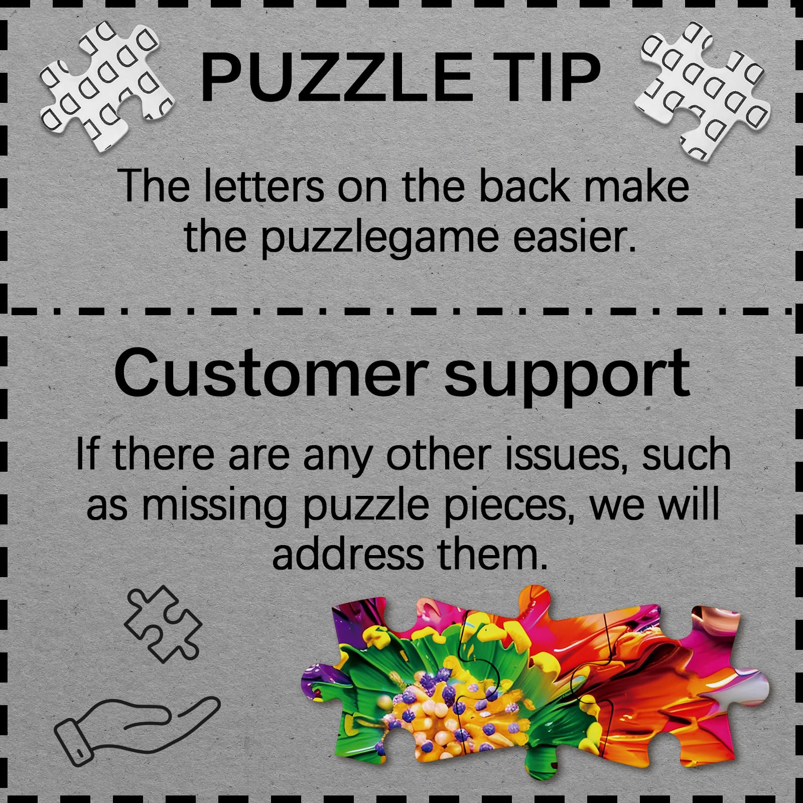 Customer Satisfaction Guaranteed Our customer service team is always ready to help you with any missing pieces, giving you a worry-free and enjoyable shopping experience. Our goal is to make your adult puzzle experience as pleasant as possible and enjoy your 3D flower puzzle