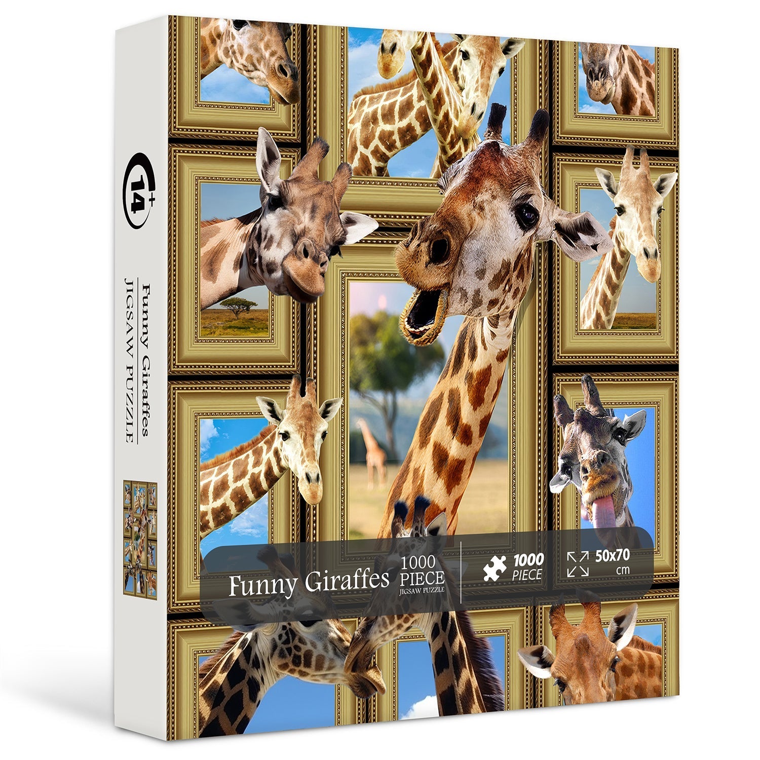【Puzzle de Girafes Drôles】Explorons ce puzzle comique et divertissant de la Girafe à la Fenêtre ! 🦒🪟 Ce puzzle est rempli des expressions amusantes des girafes qui semblent observer curieusement le monde extérieur. Avec 1000 pièces, il apportera rires et défis à votre journée.