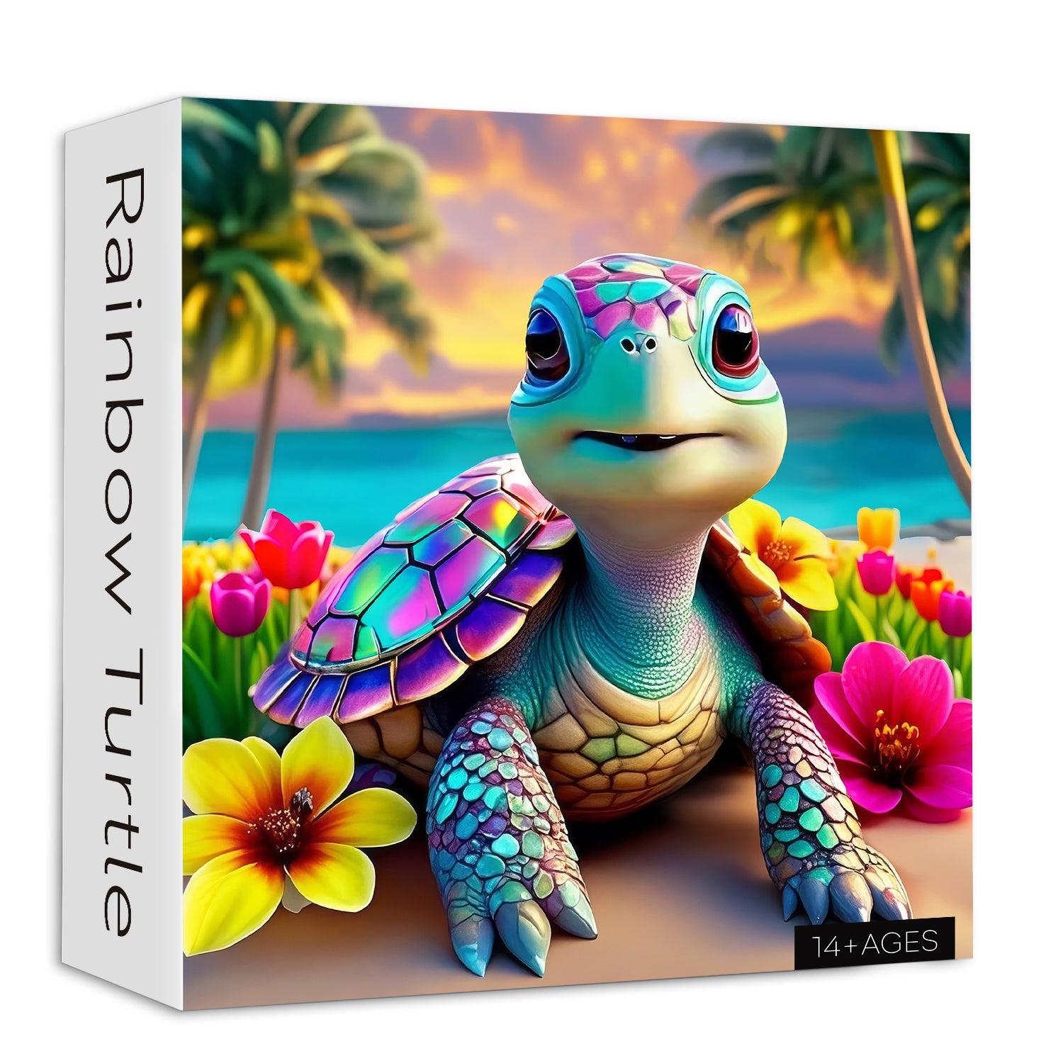 Design vibrant et ludique : Ce puzzle de 1000 pièces présente une adorable tortue bébé avec une carapace arc-en-ciel, entourée de fleurs tropicales et d'une magnifique plage au coucher du soleil. Parfait pour les amateurs de puzzles et les passionnés de nature !