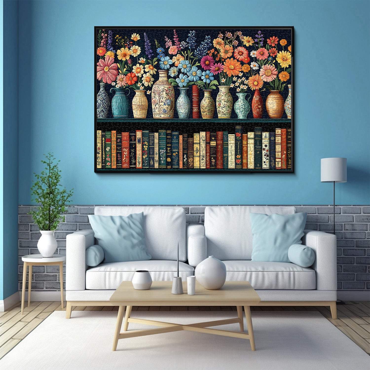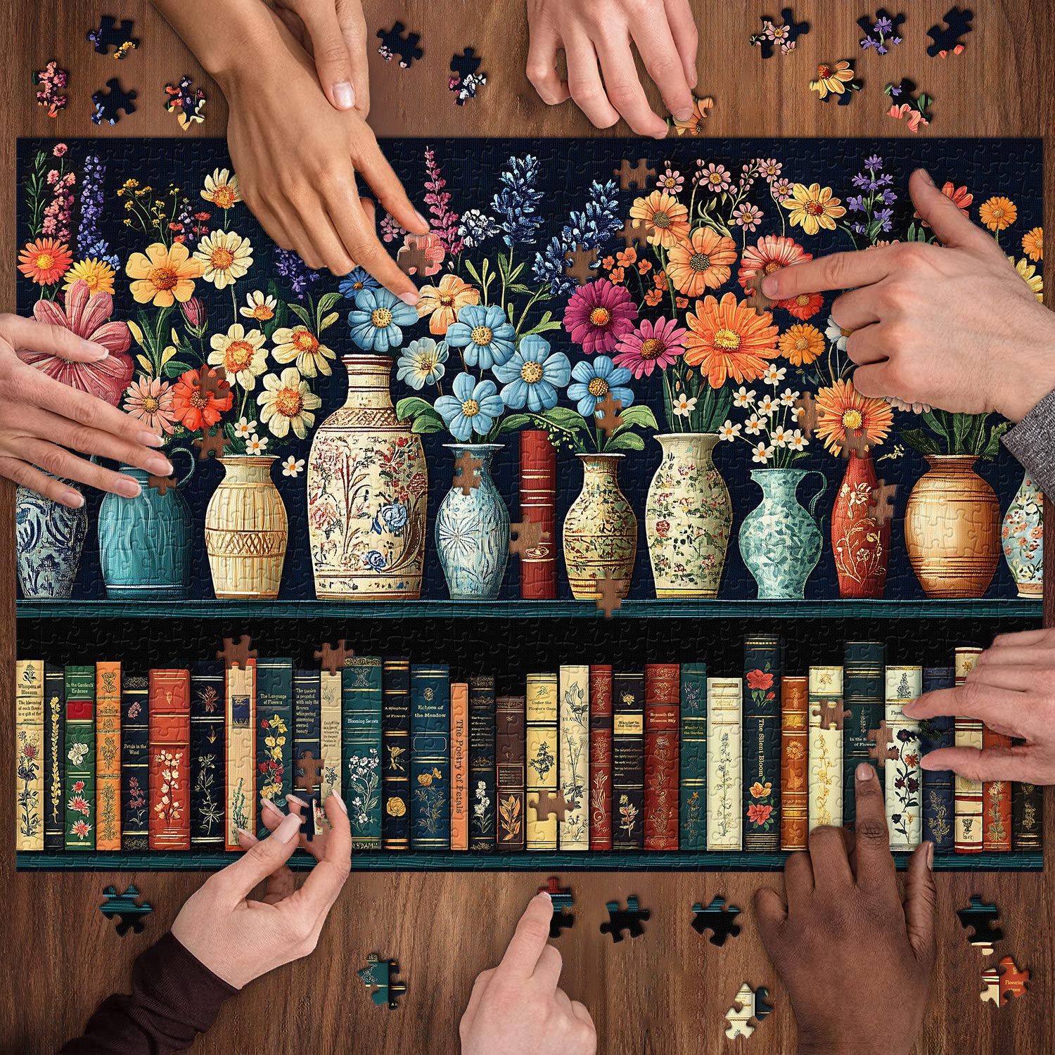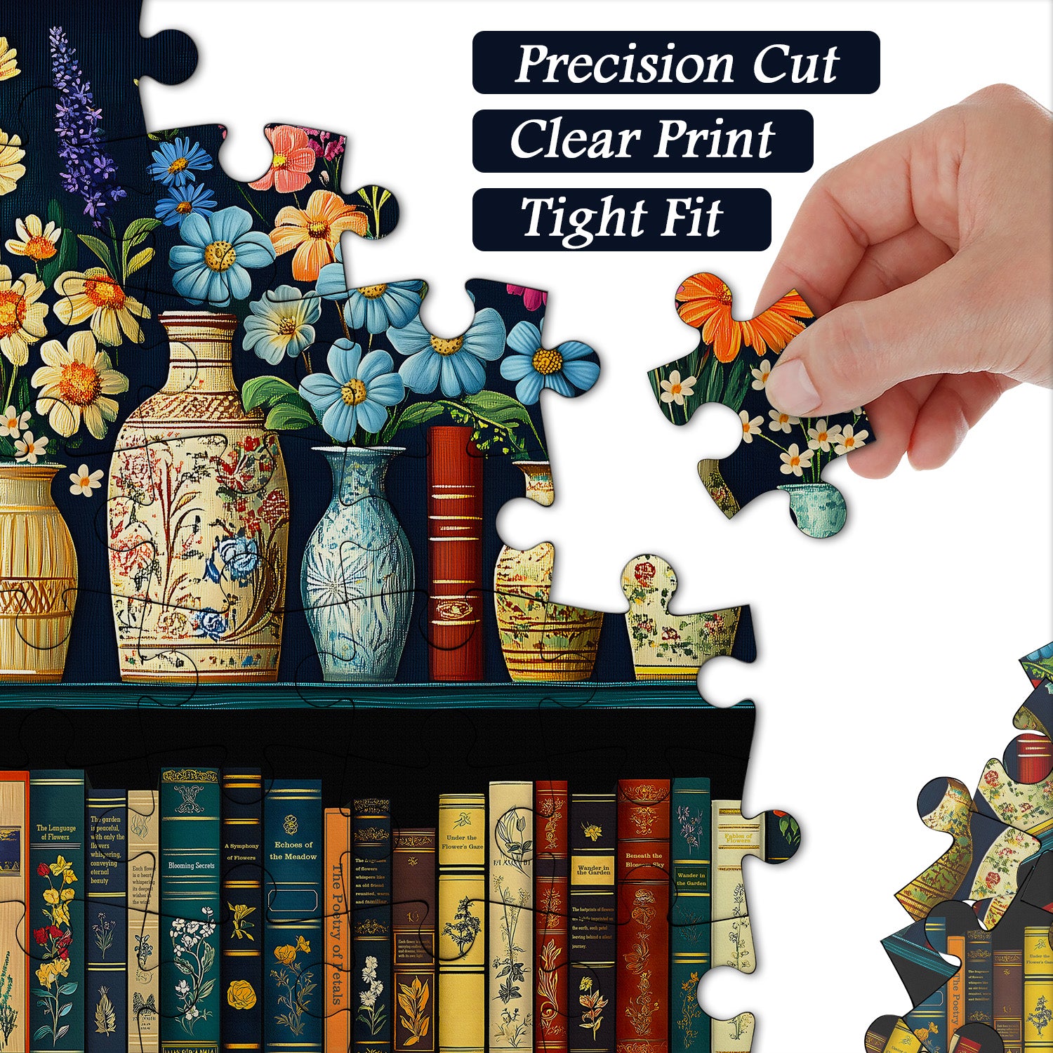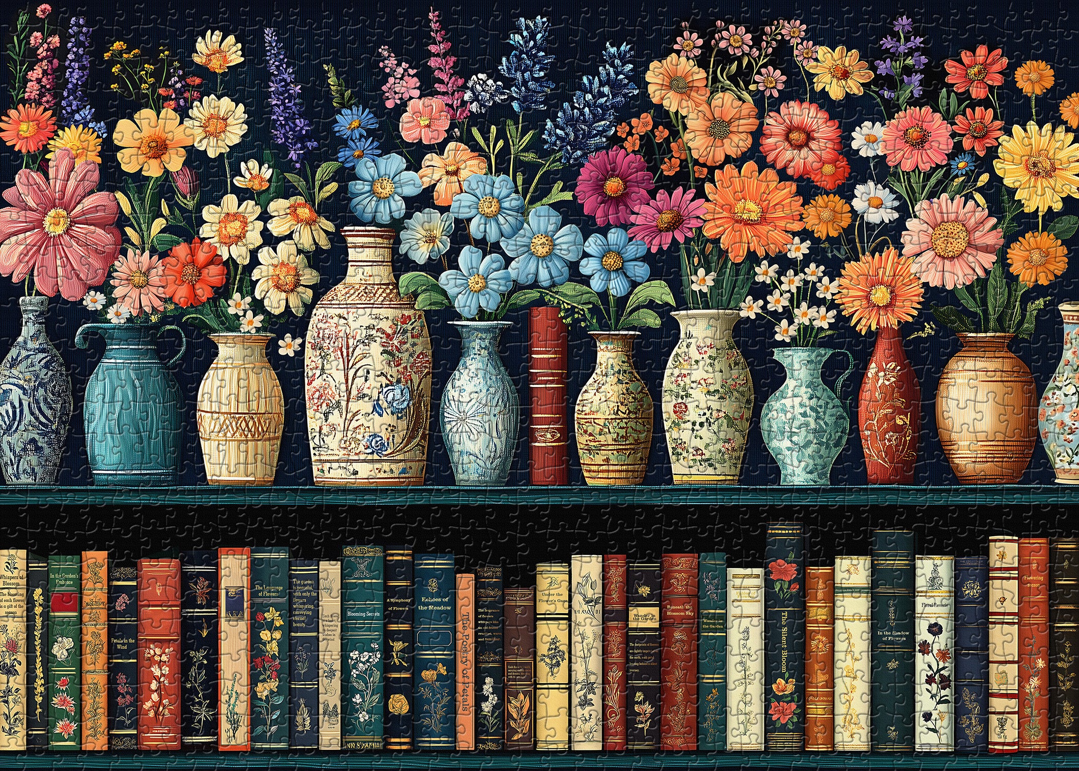 Intricate Floral Designs:Each book and vase showcases detailed floral designs, bringing a sense of elegance and charm to the puzzle. The rich colors and intricate patterns make every piece a delight to piece together.