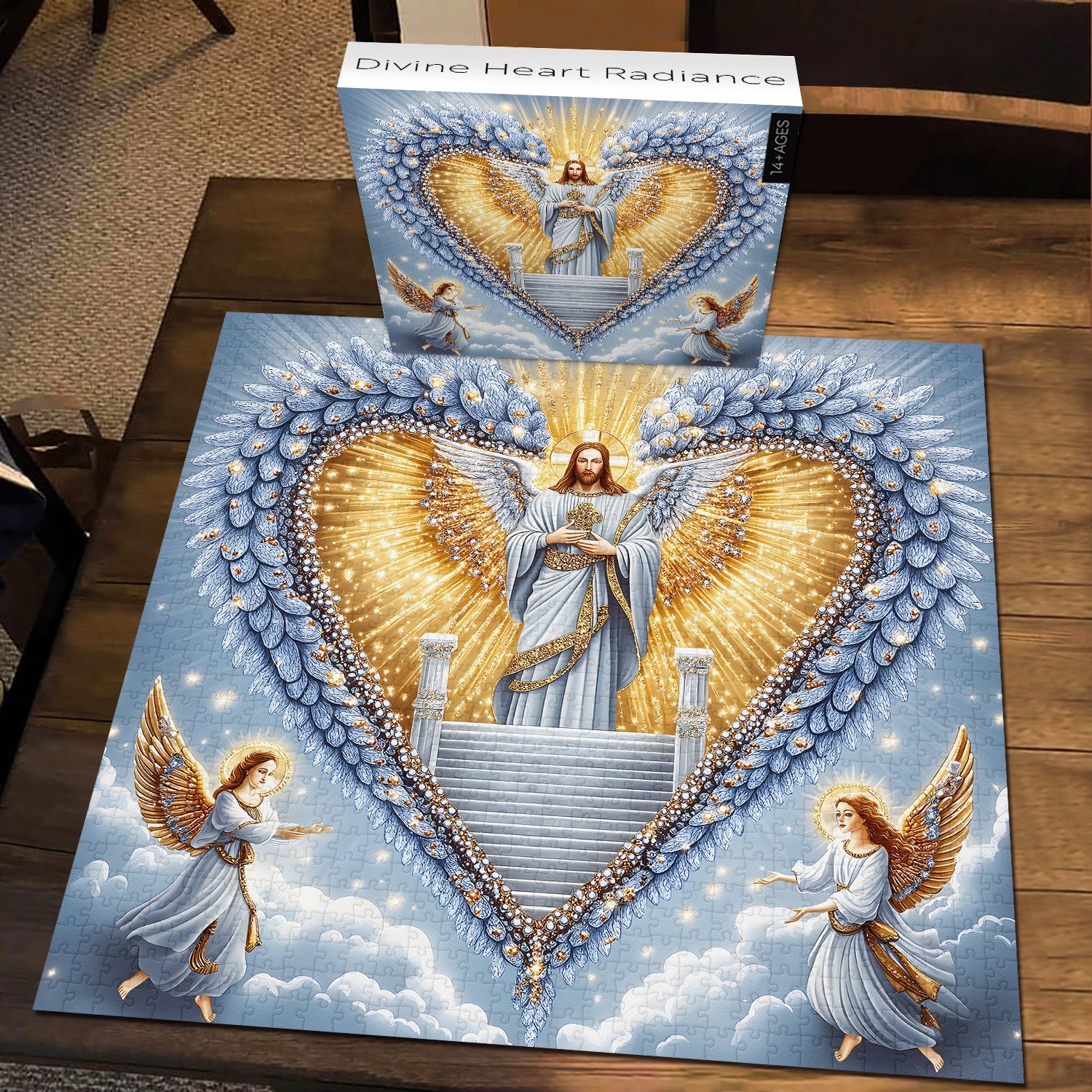 Celestial Collectible Design: Featuring iconic religious symbols like angels, a sacred heart, and divine light, this puzzle is a unique collectible for those who cherish spiritual art. Its timeless theme and exquisite craftsmanship make it a standout addition to any puzzle or religious art collection.