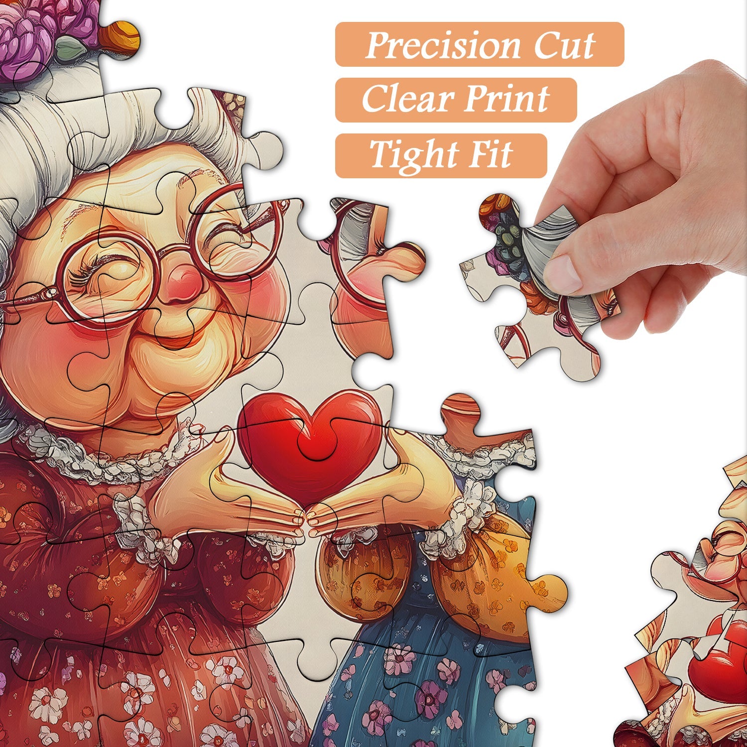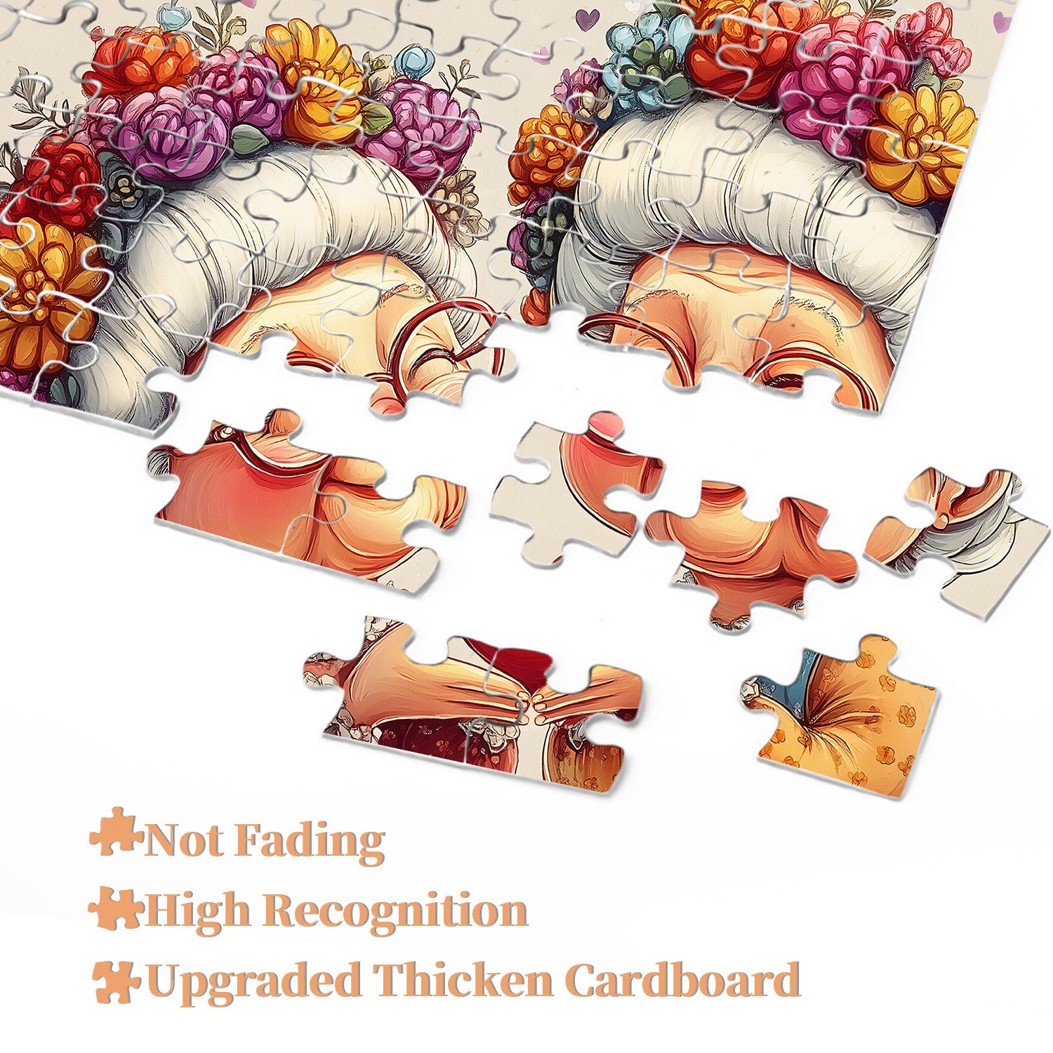 The quality of the print on the pieces is really exceptional. The cut is great and I like the gloss laminate which makes the colours brighter. The alphabet on the back is a great way to make sure the pieces are the right way up. Even down to the zip-lock bag inside to store the pieces after use. The only comment I would make is that occasionally two of us work on these and the image on the box lid is cropped, its not a biggie but would be nice if it were full. I am in the UK and the international shipping arrived really quickly too. Well done, I would definitely purchase again, thank you