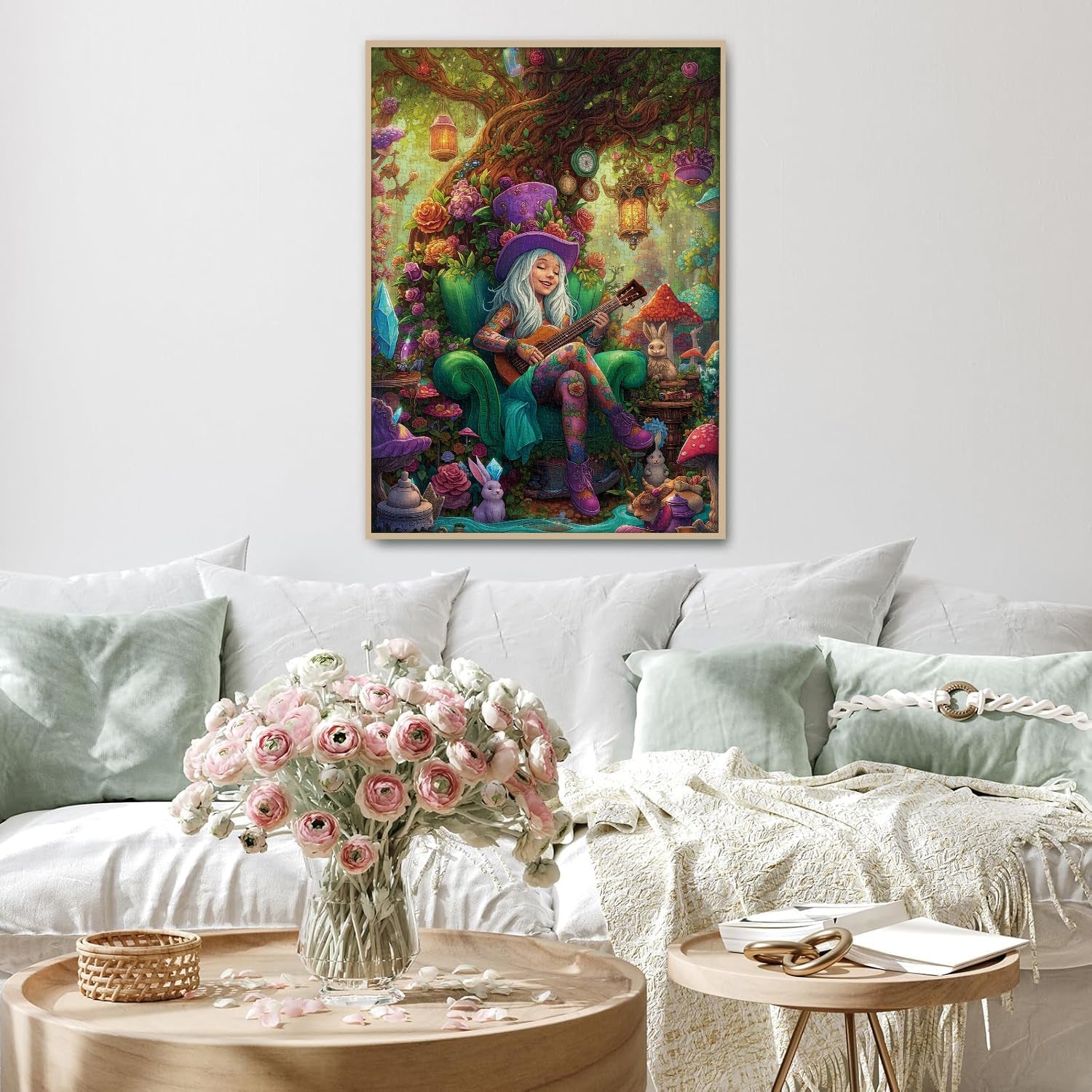 Eclectic Decor Accents: Ornate items like a teapot, a crystal - topped lamp, and a large purple boot (repurposed as decor) are integrated into the forest setting, enhancing the quirky, fairy - tale charm.