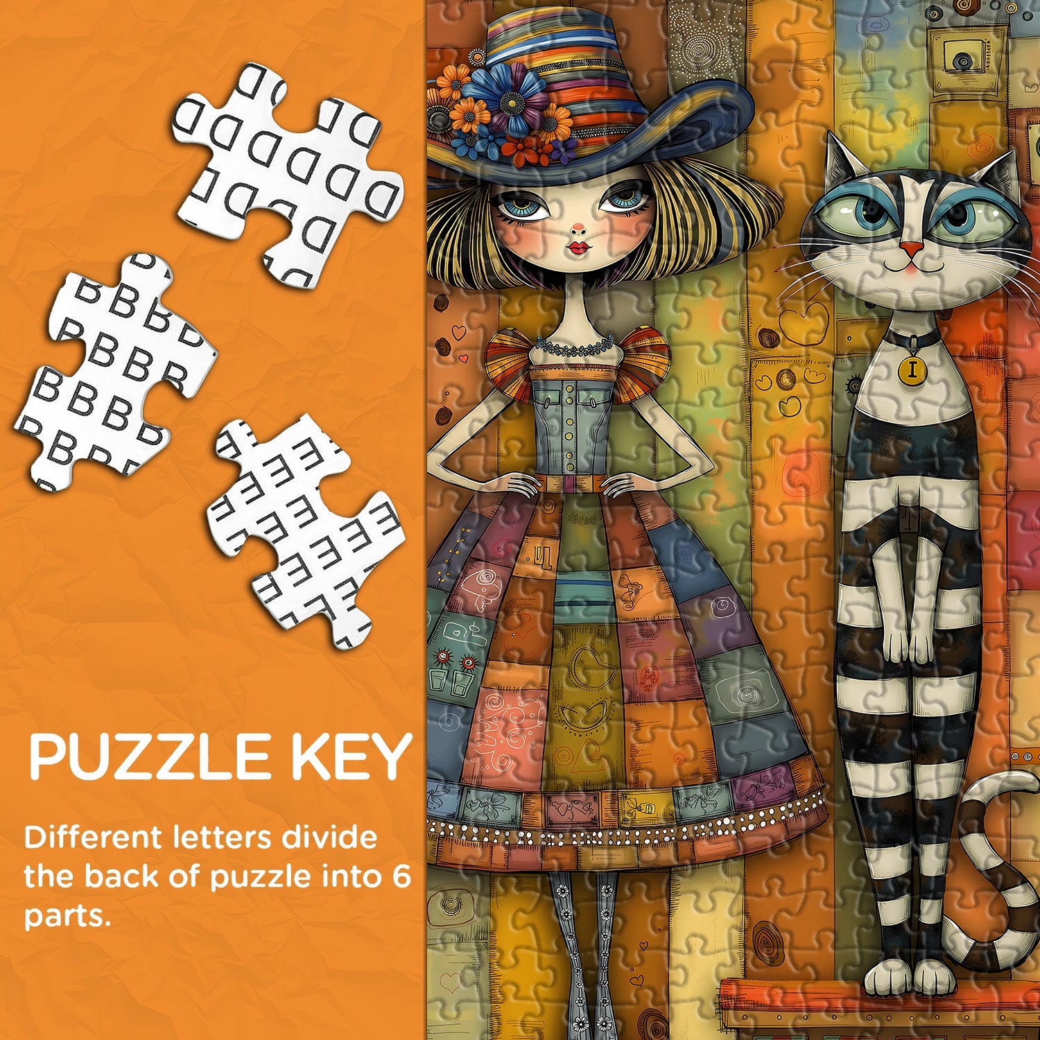 1 * Patchwork Girl & Striped Cat Jigsaw Puzzle 1000 Pieces