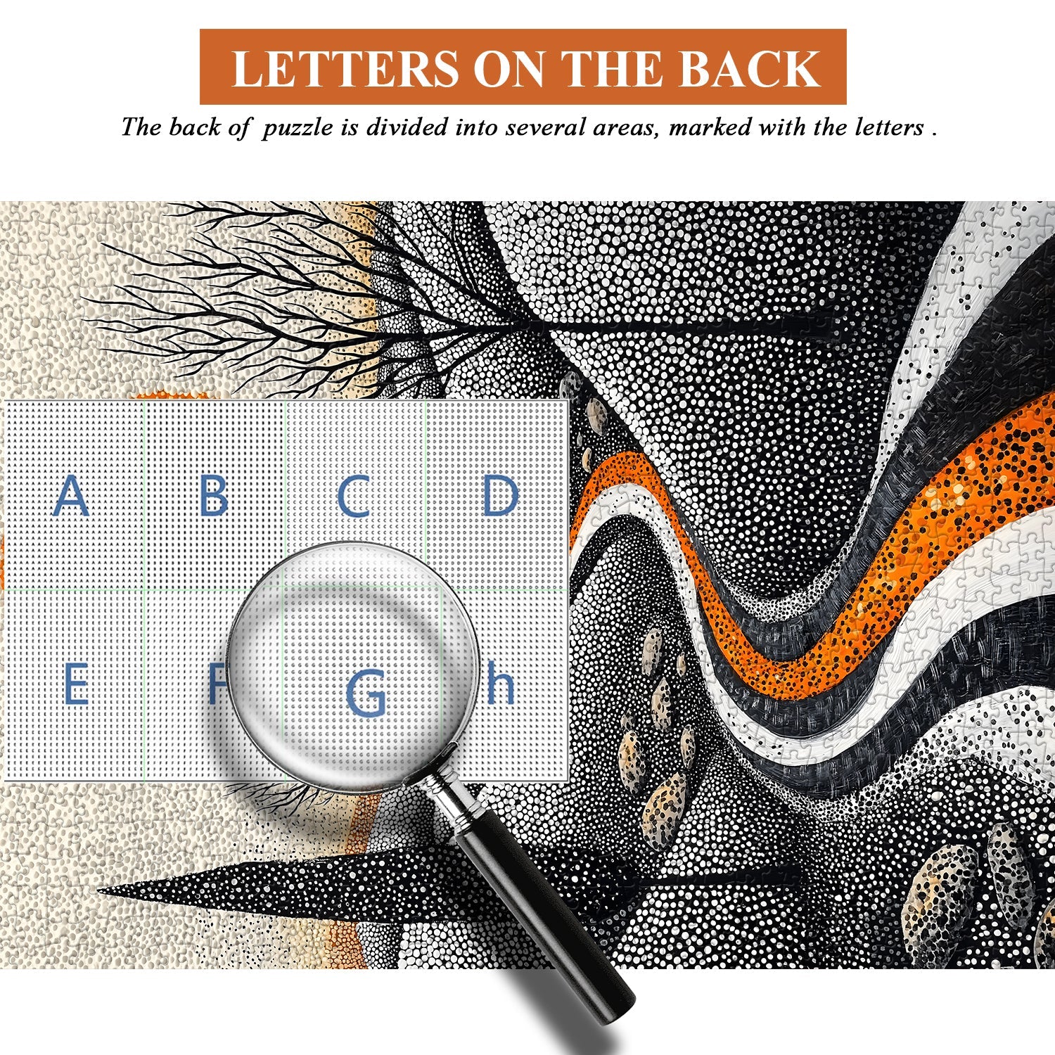 Striking Artistic Design:Features a bold, modern landscape with a glowing sun, winding path, and textured dot-style illustration for a visually captivating puzzle experience.